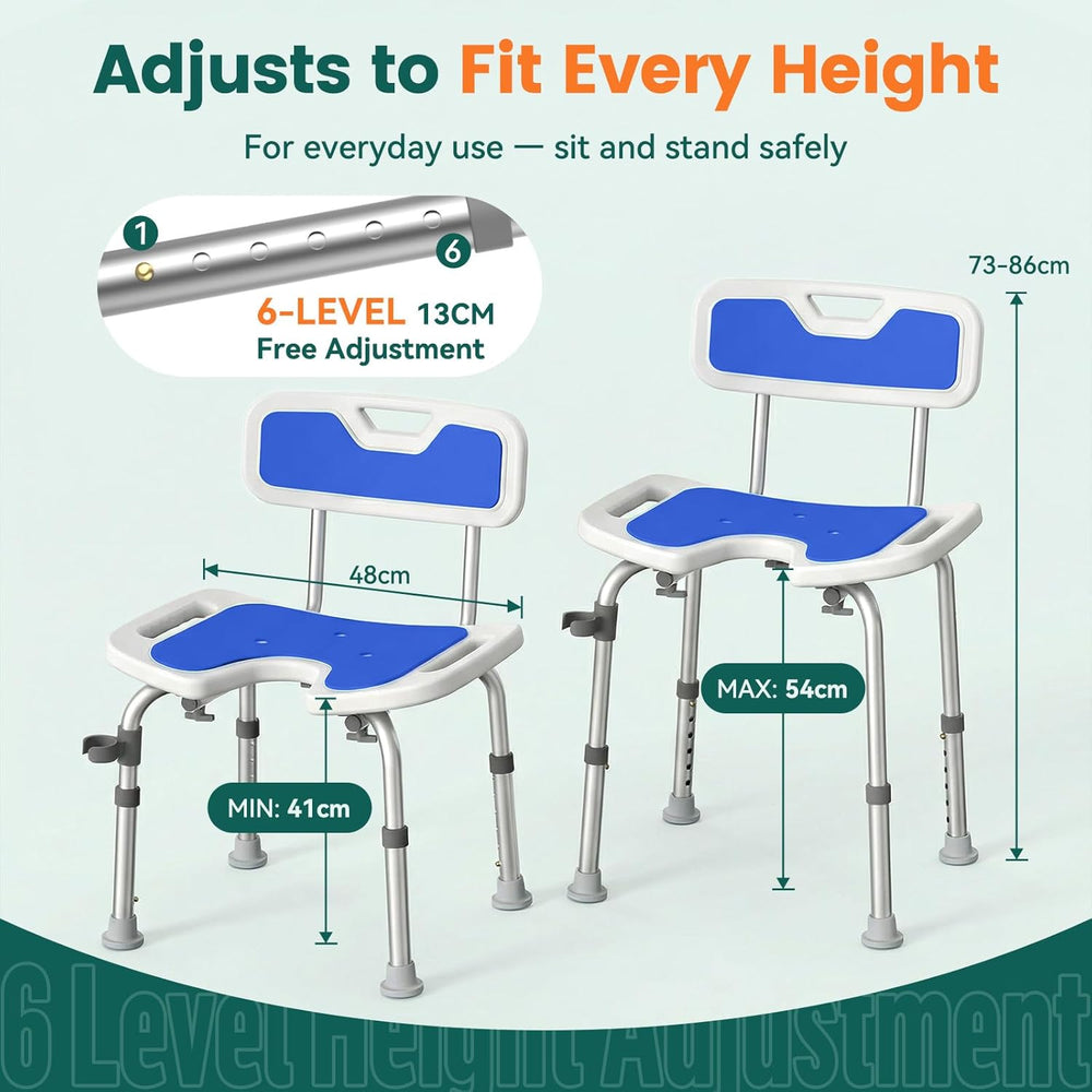 Luckfaith LC09 Shower Chair with Backrest –Height Adjustable Stool Featuring Curved Seat, Anti-Slip Foot Pads, and Integrated Shower Head Holder