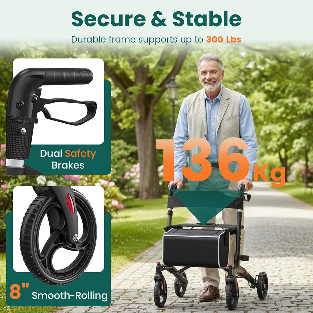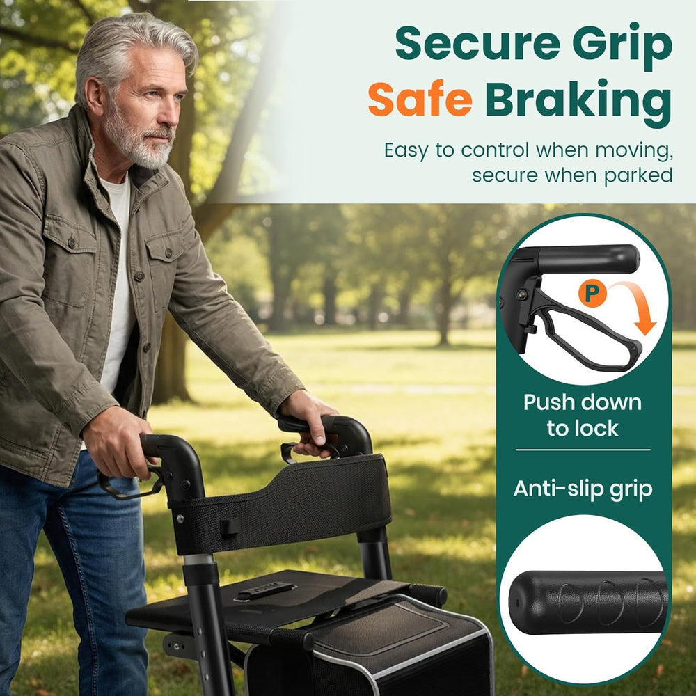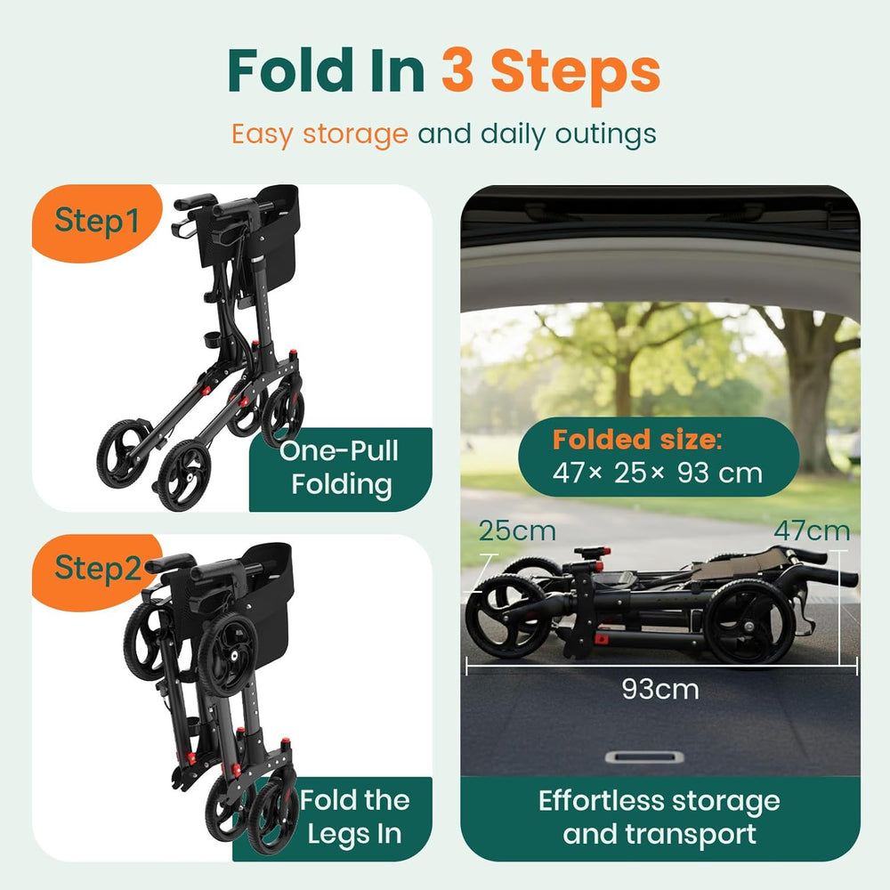 Luckfaith LR02 Wheel Rollator with Seat and Back,Foldable, Adjustable & Lightweight,Black
